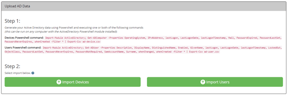 If the Combine is unable to retrieve Active Directory data automatically via LDAP(s), or if you need to refresh the data manually, you can upload an Active Directory report directly into the platform.