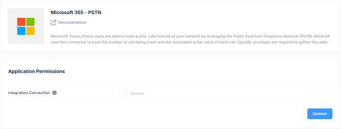 In the Block 64 portal, navigate to Integrations →Microsoft 365 PSTN and click Connect.
