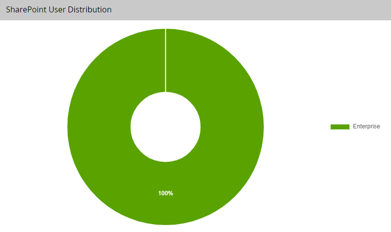 Displays a circle graph showing the percentage of users associated with a standard, enterprise, and enterprise plus CAL. The graph is color coded, and colors are added in correspondence with how many CAL types are present. Hover your cursor over each section of the graph to see the number users associated with each type of CAL.